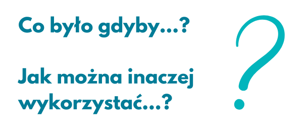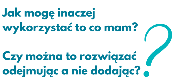Aby rozwijać umiejętność dokonywania transformacji, warto na co dzień zadawać sobie pytania, takie jak: „Jak mogę inaczej wykorzystać to, co już mam?” lub „W jaki inny sposób można rozwiązać ten problem np. odejmując a nie dodając?”. Wskazane jest też eksperymentowanie z różnymi pomysłami, nawet jeśli na początku wydają się nie obiecujące. Przecież, gdybyśmy kilkanaście temu powiedzieli sobie „zróbmy okulary bez oprawek” (powstały soczewki) albo „zróbmy rower bez kół” (rower stacjonarny do ćwiczeń), to pewnie wiele osób powiedziałoby „to nie jest możliwe!”. Dlatego, zachęcamy tutaj – poczekaj chwilę z decyzją 🙂
