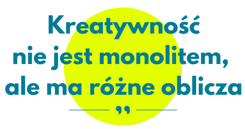 Nie jest tak, że kreatywność jest jedną zdolnością-monolitem, ale ma różne oblicza i nie musisz mieć ich wszystkich, by mówić